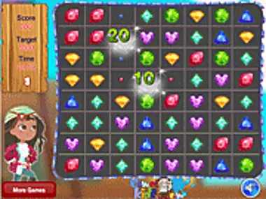 Rejoignez votre amie Ana la Pirate dans un nouveau type de jeu de correspondance de bijoux qu'elle a préparé pour vous. Ana a hâte de mieux vous connaître et de passer de superbes moments avec vous, elle aimerait donc que vous la rejoigniez dans ce nouveau jeu qu'elle a à vous proposer. Le nouveau jeu avec Anna la Pirate est un jeu de logique amusant dans lequel vous devrez associer tous les bijoux du même type et de la même couleur afin d'obtenir le plus de points possible.