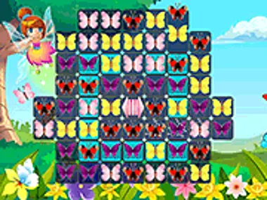 Match 3 game with Butterflies. Try to remove all colored (light blue) backgrounds by matching 3 or more of the same butterflies.