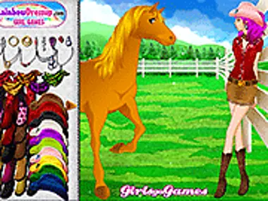 Click Melanie's horse to change its color and click the arrows and clothes to add/remove items.