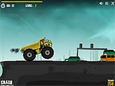 Drive your large construction truck over smaller vehicles as you crush them & reach the end.