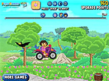 Dora fait une course de VTT contre ses amis. Aide Dora à atteindre la première place dans toutes les courses. Fais attention aux oiseaux et aux tonneaux sur le parcours, ils ralentiront Dora. Bonne chance.