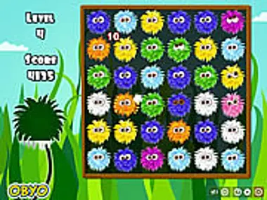 Your goal is to drag and line up three foppies to free them.