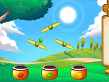 Collect the fruit in the right basket. Click on the pivot points to control the game.