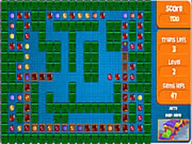 Collect all the gems, avoid getting trapped or bumping into your own carriages. Progress levels all 100 of them.