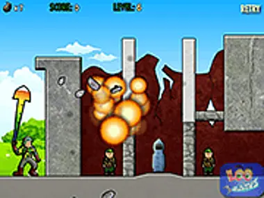 Lancez une grenade sur les ennemis et anéantissez-les tous. Utilisez la barre de puissance pour augmenter et diminuer la puissance du lancer. Soyez prudent, vos grenades sont en nombre limité, utilisez-les donc judicieusement.