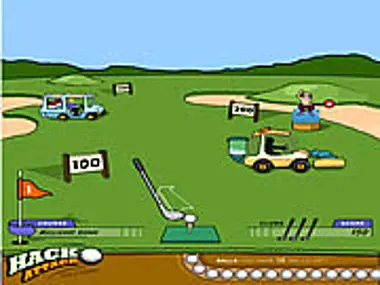 Hack Attack puts you at a series of virtual golf driving ranges . Just like a real driving range, your goal is to pummel the ball-retrieval cart until it no longer moves. You only have a limited number of balls, so shoot carefully.