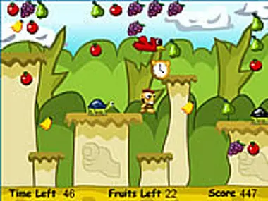 Collect all the fruits and destroy the evil turtles to reach the next level. You need to jump two times over them.