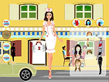 Kiara works in the City. She can take on different work roles and show them by her uniform.