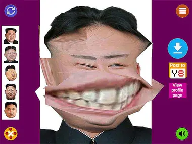 Kim Jong Un LOL Face vous donne le pouvoir de la comédie ! Prenez un portrait sérieux et transformez-le en quelque chose d'hilarant avec des distorsions farfelues, des déformations élastiques et des modifications de visage amusantes. Faites glisser, déformez et remodelez la grille photo pour créer les versions les plus drôles que vous puissiez imaginer. Il ne s'agit pas de politique, il s'agit avant tout de rire ! Que vous vouliez une grosse tête, un petit menton ou un sourire étiré ridicule, cet éditeur vous permet de créer une infinité de visages amusants. Amusez-vous à jouer à ce jeu de déformation de visage amusant ici sur Y8.com !