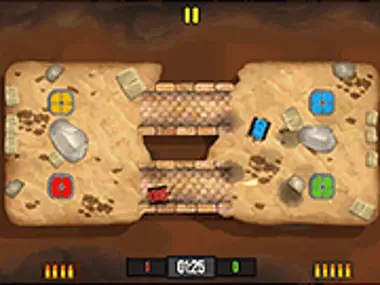 Bienvenue dans Mega Tank Wars Arena pour 2 joueurs. Le jeu propose trois modes : en mode "Classique", vous tenterez de détruire le char ennemi sur différentes cartes ; en mode "Capture du drapeau", vous devrez capturer le drapeau en territoire ennemi et le ramener sur votre propre terrain ; et dans un autre mode appelé "Death Match", essayez d'obtenir le meilleur score en 2 minutes ! Bonne chance et amusez-vous bien !