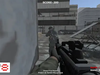 Dans ce jeu de tir FPS, développé avec Unity, vous devez débarrasser le toit des soldats du camp adverse. Prenez vos armes et vos bombes qui sont sur la caisse, et lancez-vous dans le « nettoyage ». Tirez vite et trouvez un endroit où vous cacher lorsque les vagues d'ennemis viendront à vous.