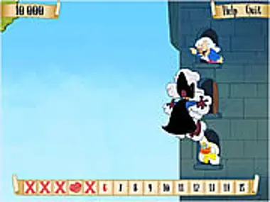 Swing back and forth on the rope just right to jump and land in the window with the girl duck.