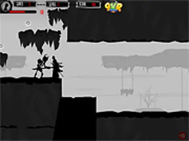As a silhouette fighter, in this sidescroller world, fight demons and grab energy orbs for powerups.