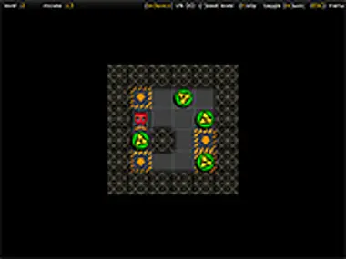 As a robot, push all the canisters of biohazard waste into the marked spots. Don't get them stuck!