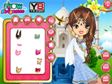 Voulez-vous vous lier d'amitié avec une Indienne très douée en danse ? Jouez au jeu et vous rencontrerez une princesse indienne qui veut se faire de nouveaux amis en ligne. La princesse indienne vous montrera de nombreuses robes, accessoires et chaussures originales dans le jeu, et vous pourrez l'aider à s'habiller. Mettez-vous au défi dans ce jeu de princesse indienne et aidez-la à s'habiller plus joliment que d'habitude ! Découvrez sa garde-robe élégante et faites le meilleur choix en sélectionnant les meilleurs vêtements, accessoires, chaussures et coiffures. Elle vous attend ! Venez !