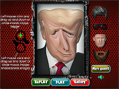 Trump Funny Face 2 - Jeu flash amusant pour tout le monde. Utilisez votre souris pour faire une drôle de tête à Trump. Rendez Trump aussi drôle que possible. Essayez de ne pas rire. Imprimez l'image une fois terminé.
