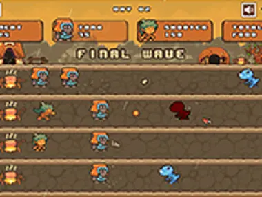 Village Defense - Bienvenue à l'époque dangereuse des dinosaures. Votre tâche principale dans le jeu est de protéger votre village des dinosaures et de construire votre stratégie de défense impossible. Achetez une nouvelle ferme alimentaire pour collecter de la nourriture pour vos héros et combattre les dinosaures.